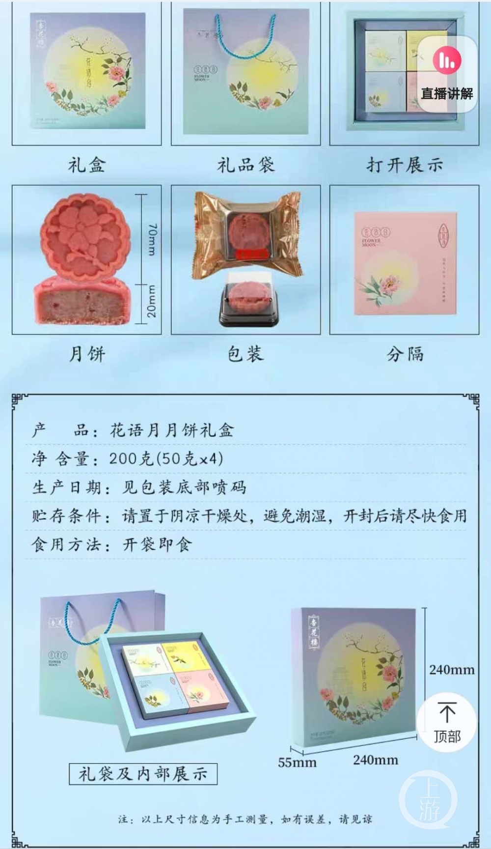 下游摄影记者注意到,绿谢远涵提到的这款月饼包装袋,由塑料内盒、密封袋、单包装袋盒和礼盒组成,一个礼盒中共有4块独立包装袋的月饼。